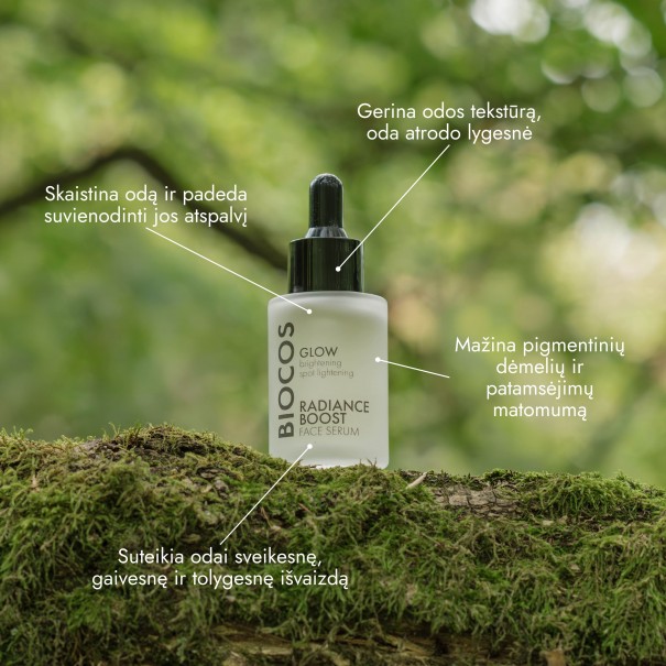 Odos gebėjimai atsinaujinti su laiku mažėja, o tam įtakos turi žalingi aplinkos veiksniai, oksidacinė tarša. Skaistinamojo veido serumo sudėtyje esančių vitamino B, azelaino rūgšties bei natūralių augalinių ekstraktų kompleksas padės pašviesinti dėmeles, odos patamsėjimus, sulyginti odos atspalvį ir tekstūrą, pamažinti odos nelygumus.