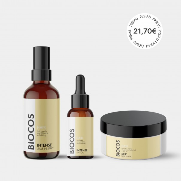 Plaukų priežiūros rinkinys intensyviam plaukų drėkinimui ir maitinimui su augalinių ir eterinių aliejų kompleksais, kad vasarą tavo plaukai žvilgėtų, būtu minkšti ir purūs!