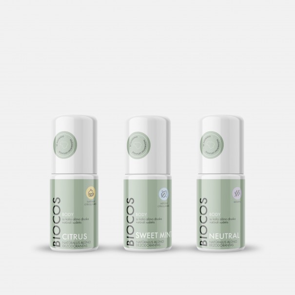 BIOCOS natūralių dezodorantų rinkinys, 3vnt.