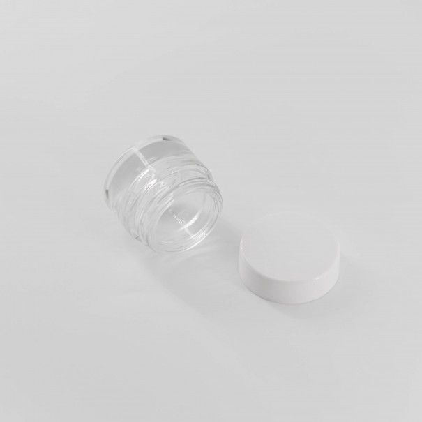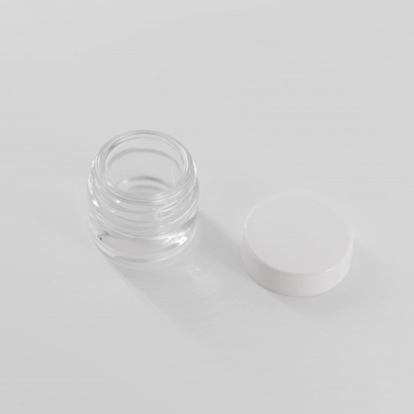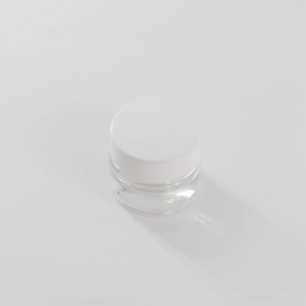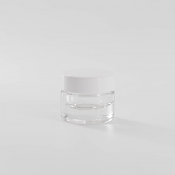 Modernaus dizaino, aukštos kokybės skaidraus stiklo indelis kosmetikai. Klasikinės cilindro formos.